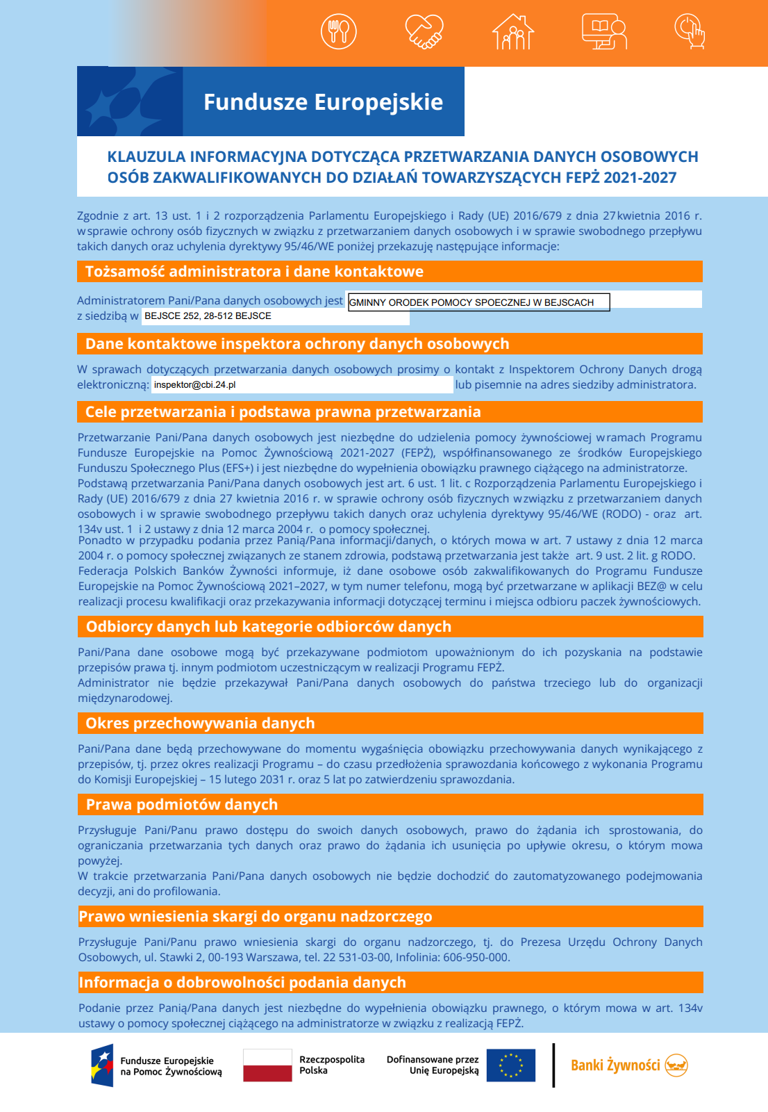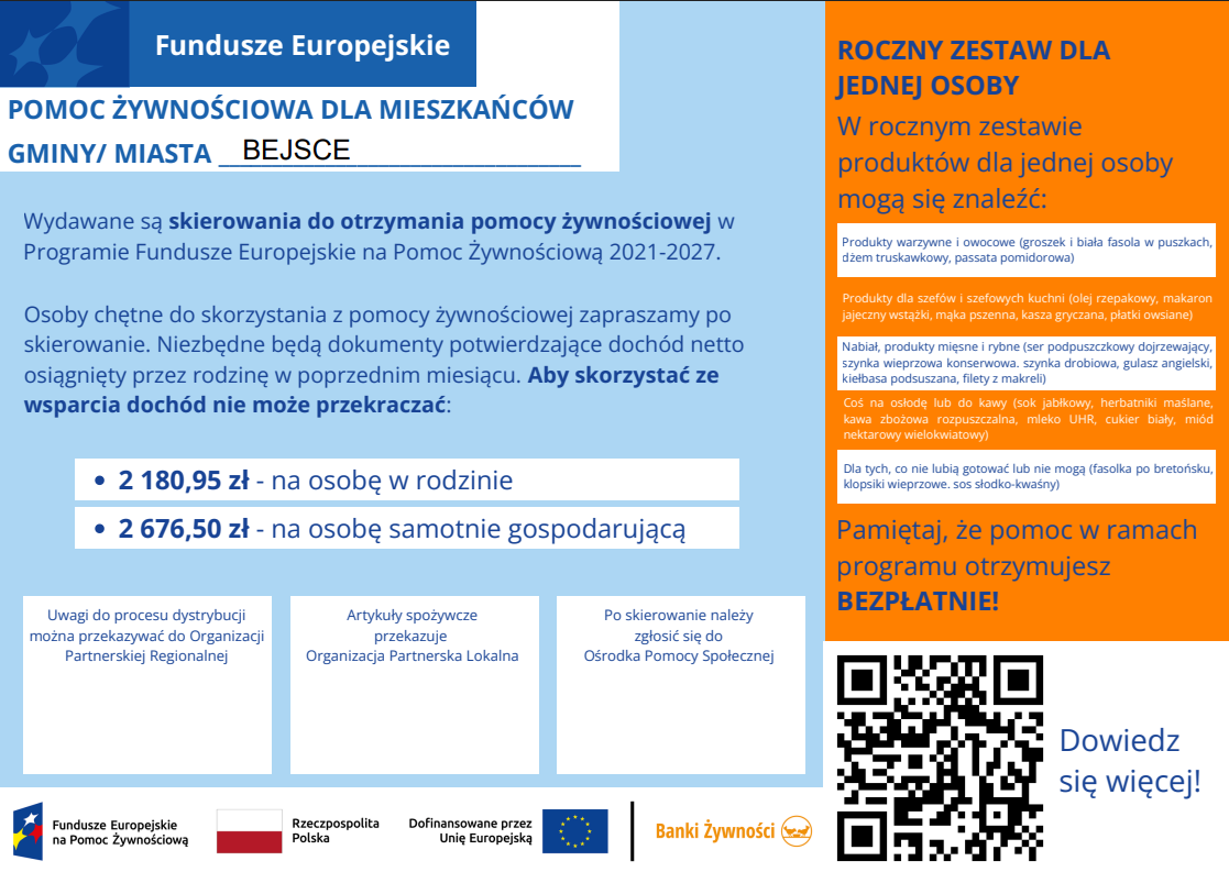 Pomoc żywnościowa dla mieszkańców Gminy Bejsce